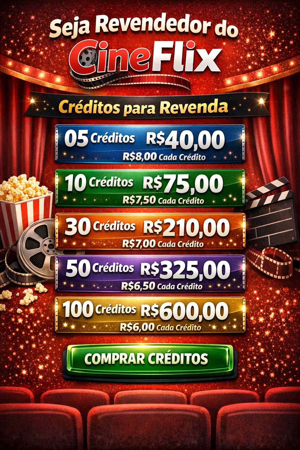 Ganhe dinheiro revendendo um dos melhores serviços de IPTV do Brasil! Com o CineFlix IPTV, você oferece aos seus clientes milhares de canais, filmes, séries, esportes e muito mais, com qualidade HD e estabilidade.